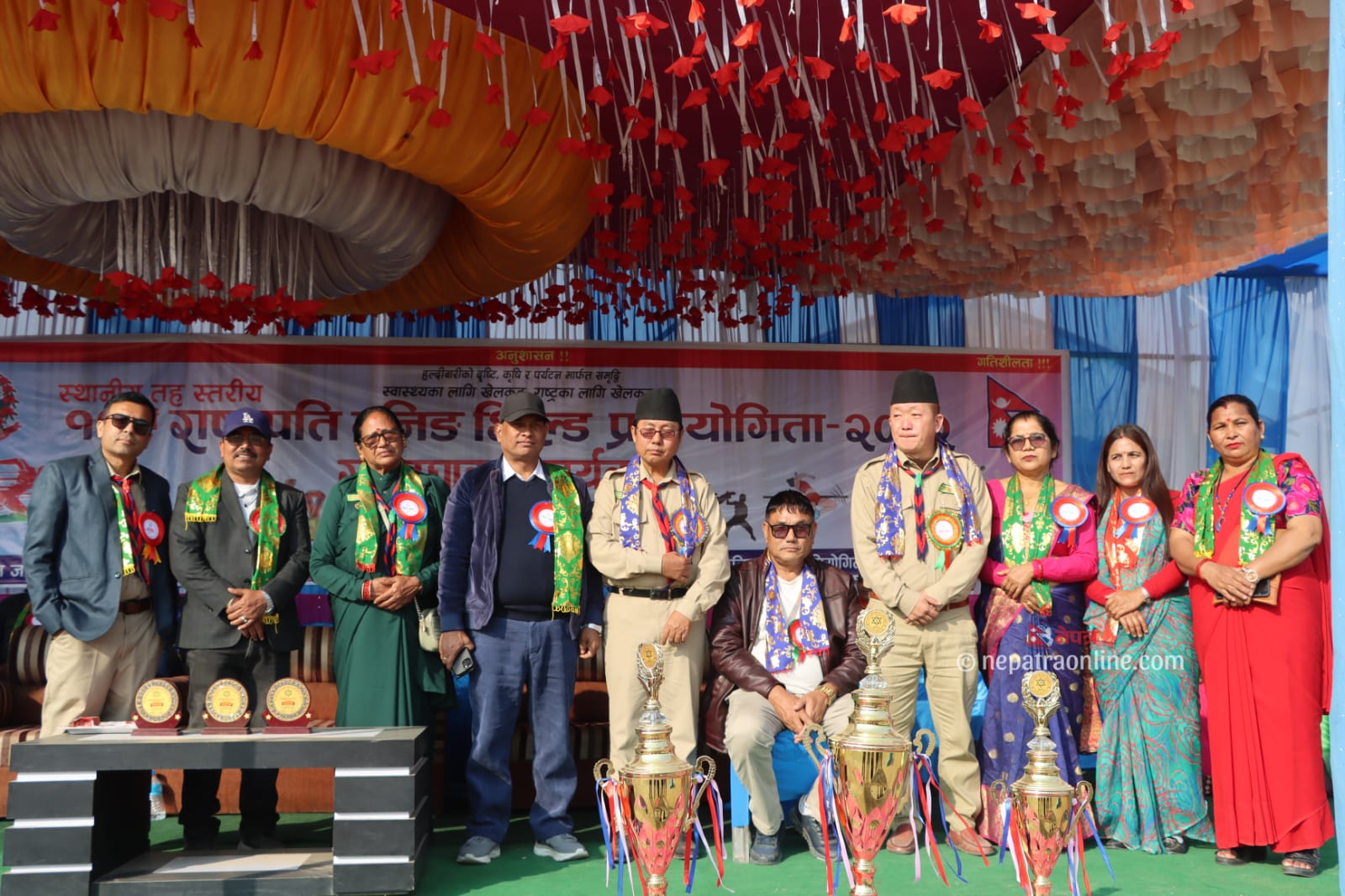 समापन कार्यक्रममा प्रमुख अतिथि गाउँपालिका अध्यक्ष रविन्द्र प्रसाद लिङ्देन, उपाध्यक्ष लक्ष्मीदेवी मैनाली, प्रमुख प्रशासकीय अधिकृत मानबहादुर वन महेन्द्र, वडा नम्बर १ का वडाध्यक्ष देवीबहादुर थापा, वडा नम्बर २ का वडाध्यक्ष शूकालाल राजवंशीलगायत जनप्रतिनिधिहरूको उपस्थिति रहेको थियो। कार्यक्रममा विजयी खेलाडी तथा विद्यालयहरूलाई मेडल र ट्रफी वितरण गरिएको थियो।